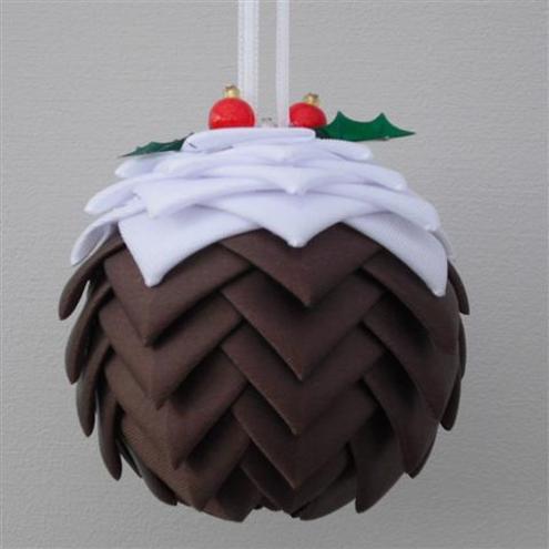 This 6 cm Christmas Pudding - Artichoke Ball is handmade with Brown and White ribbons, which have been folded and pinned in place onto the ball. The top is tastefully decorated with Green Holly leaves/sequins and Red Berries to compliment the ball and provided with a ribbon for hanging. (These are not Toys and should not be eaten).
