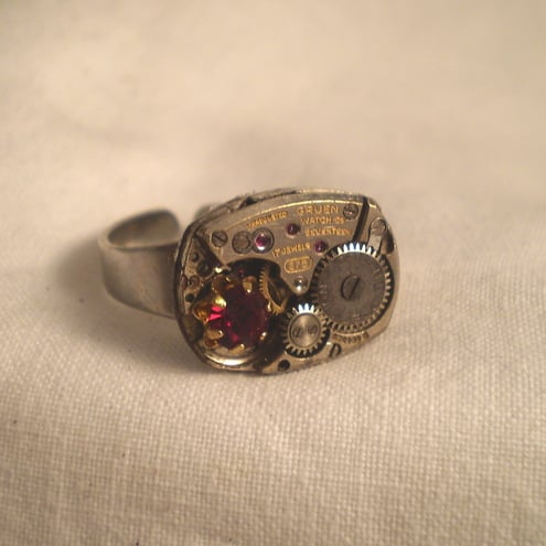 Steampunk simplicity... an exquisite, decorative gleaming 17 jewel vintage watch movement has been used to create this stylish ring. To wear on any occasion to add a touch of vintage with a twist.