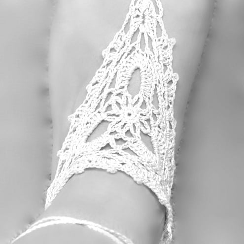 This is a pattern to make crochet barefoot sandals, designed by me and never published before. This could make a perfect accessory to a wedding on the beach, or sand where you don't want to wear any heels or absolutely nothing on your feet. Make it in color and take it with you to a holiday to add something pretty to your outfit!