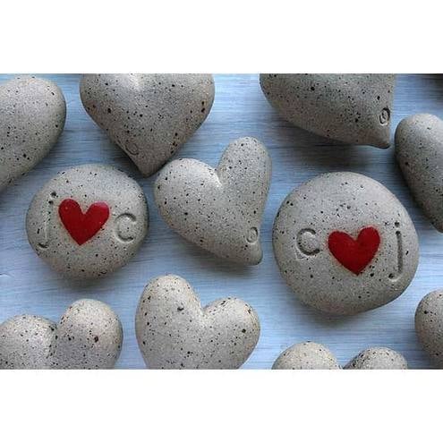 Hand formed ceramic 'pebble' ornaments .I can stamp these decorative objects with any initial to sit either side of the glazed red heart. I can use upper or lower case letters. A beautiful and tactile offering to newly weds, anniversary gifts or for your own loved one! Look lovely nestled in a bowl with found natural objects or my handmade ceramic heart shaped pebbles.
