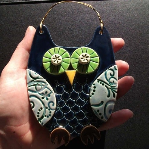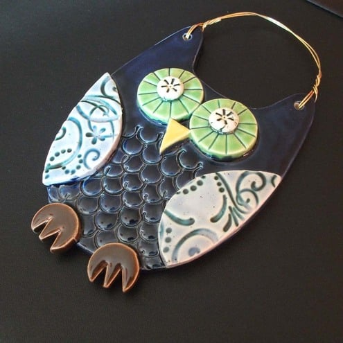 This cute ceramic owl is made from white earthenware clay with all the individual pieces hand cut and decorated.