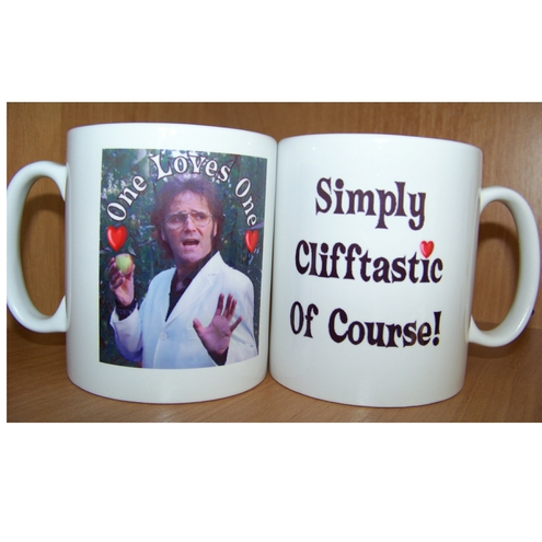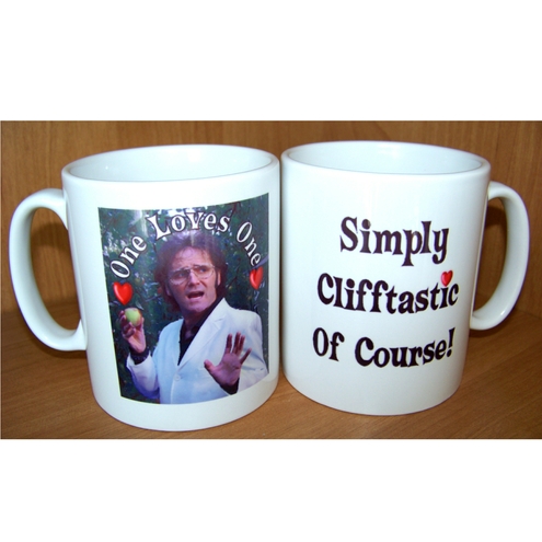 A Simply Clifftastic Ceramic Mug bearing The Famous Cliff Character and Catchphrase from Stevie Riks.