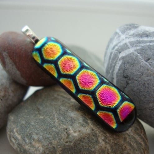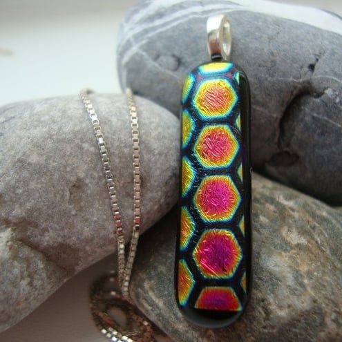 a shiny dichroic pendant, dress me up dress me down, I go with everything.