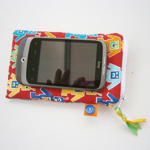 Cute little red robots I phone/camera case with lining and zipper fastener