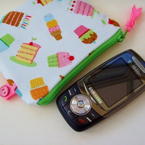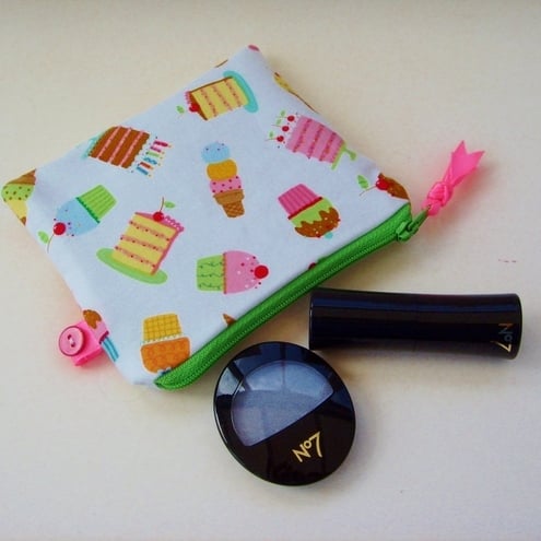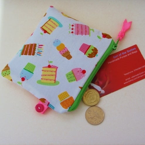 Cute little white cupcakes credit card / coin purse with contrasting zip and lining.