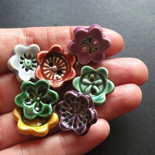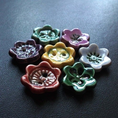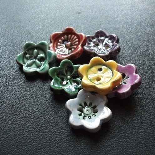 This little set of buttons is made from white earthenware clay, embossed with pattern and then cut out.
