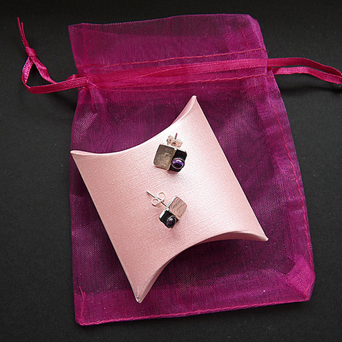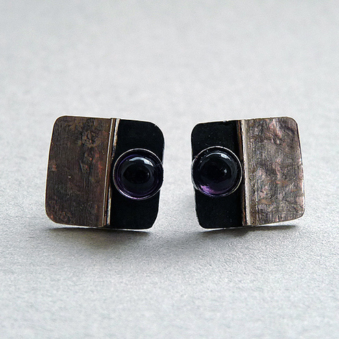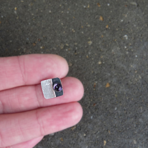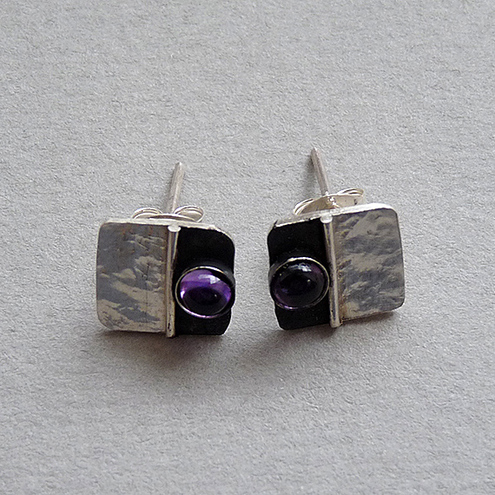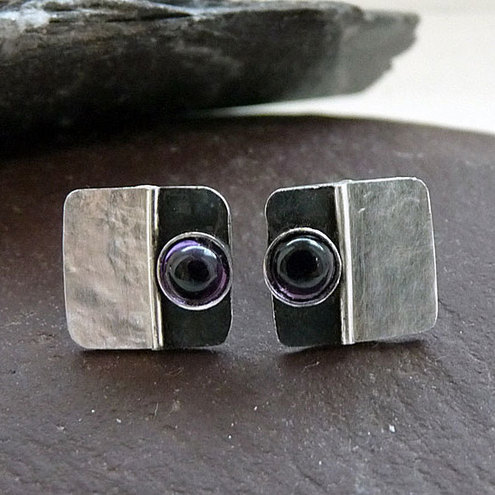 These contemporary square studs with Amethyst are completely hand made in sterling silver. They have been textured, partially oxidized and polished to a bright and shiny finish. They have sterling silver butterfly backs.