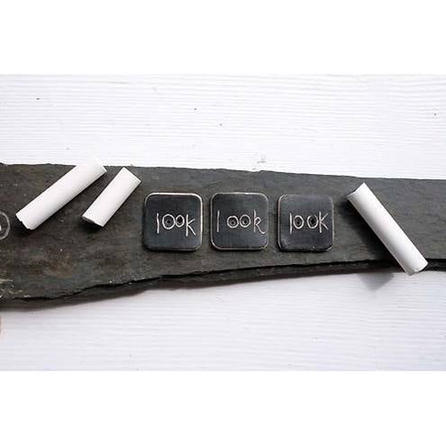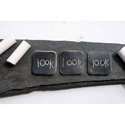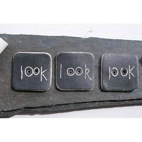 These matt black stoneware buttons decorated with the word- 'look' -are one of the designs from my new range of blackboard buttons.