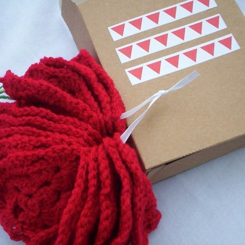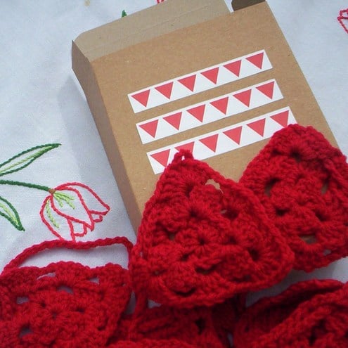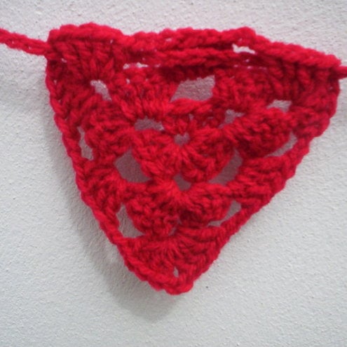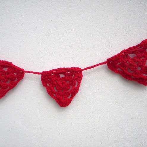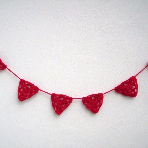 The garland has 14 red, hand crocheted flags, supplied with a crocheted string approx 3m (118 inches, nearly 10ft) long with loops for hanging.