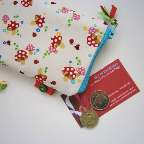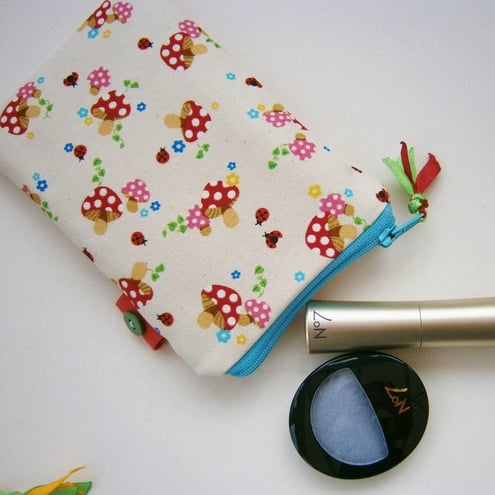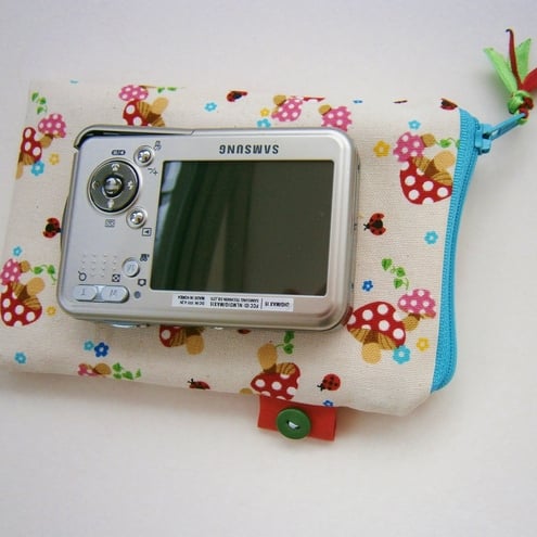 Cute little red mushrooms I phone/camera case with lining and zipper fastener.