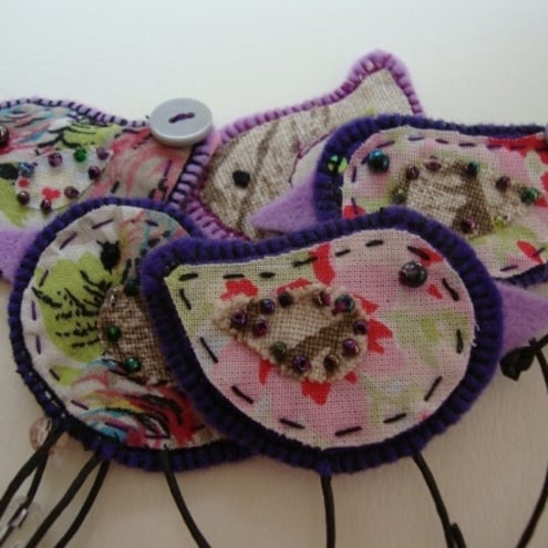 made from felt and beady bits with dangly legs, each bird is slightly different but just as nice