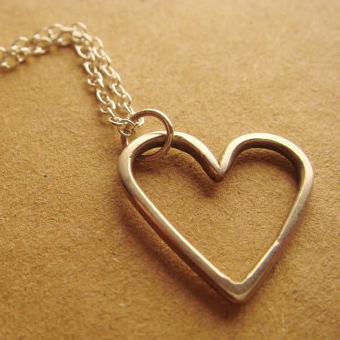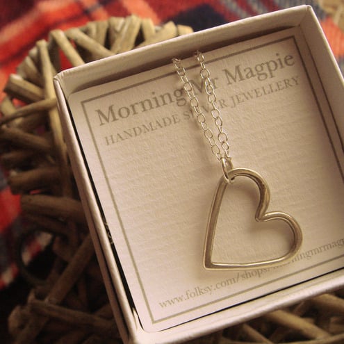 A simple handcrafted silver heart, polished and hung from a silver chain. (Choose from trace chain or snake chain, please state upon ordering).
