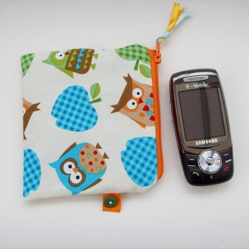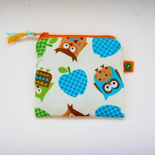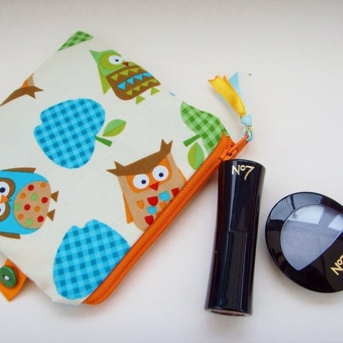 Cute little owls credit card / coin purse with contrasting zip and lining.