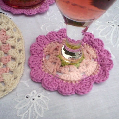 These coasters are a pretty addition to your home. They're also very practical because the cotton is absorbent so will easily soak up spills.