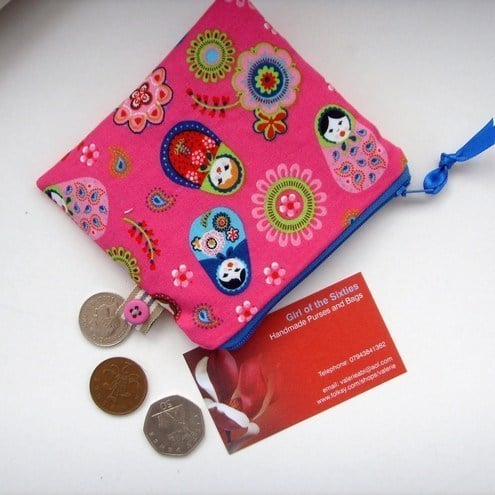Pretty little Russian doll Japanese printed fabric coin purse, perfect for your coins, notes and cards.