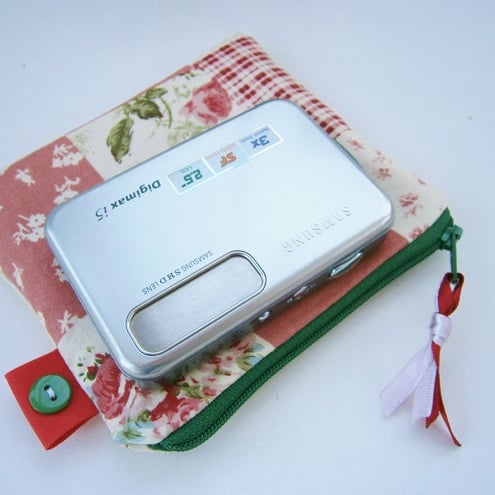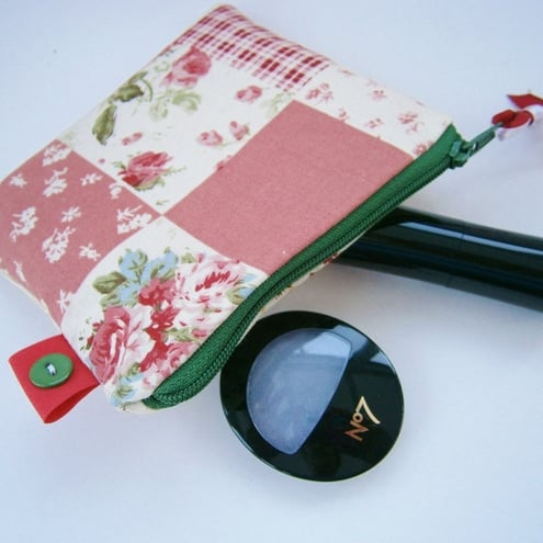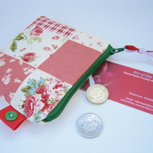Shabby chic credit card / coin purse with contrasting zip and lining.