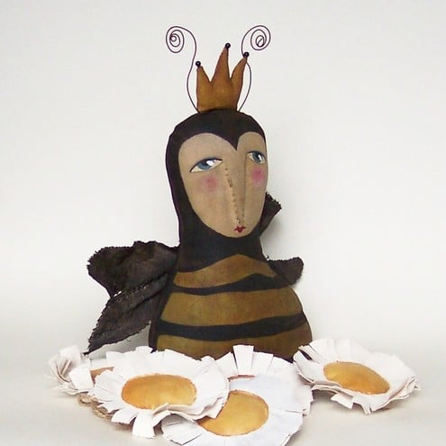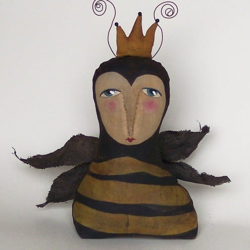 Queen Bee is made from linen,that I have painted, sanded then over dyed with coffee and cinnamon.She is made from the same pattern as the Primitive Angel,but was very nearly made into a witch !