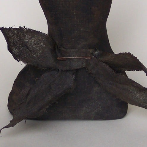 Her nose is needle sculpted and her antennae are made from curled rusty wire.The wings are made from a 1950's petticoat that I have dyed and then further stiffened and crumpled, then dryed.They are attached with a rusty look safety pin.