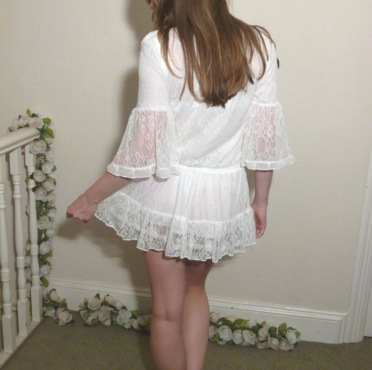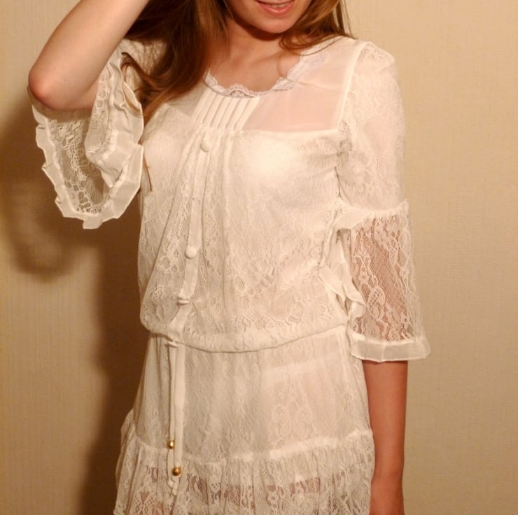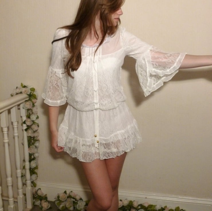 This is a really pretty, soft and delicate lacy tunic top in a soft Ivory Cream colour.