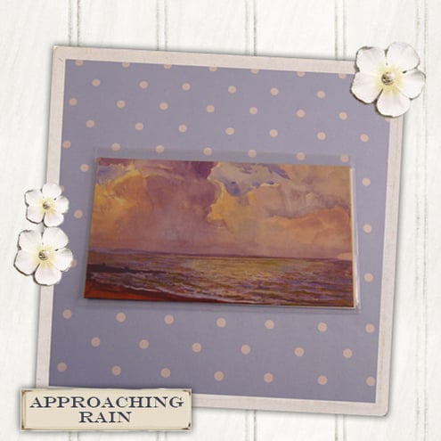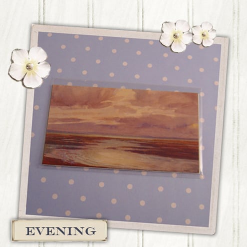 The paintings of beach scenes from the 1920's. They all have amazing clouds and really give you a feeling of holidays or day trips to the seaside. There is one of each of the following designs in the pack ~ Evening ~ Storm Clouds ~ Approaching Rain ~ Low Tide.