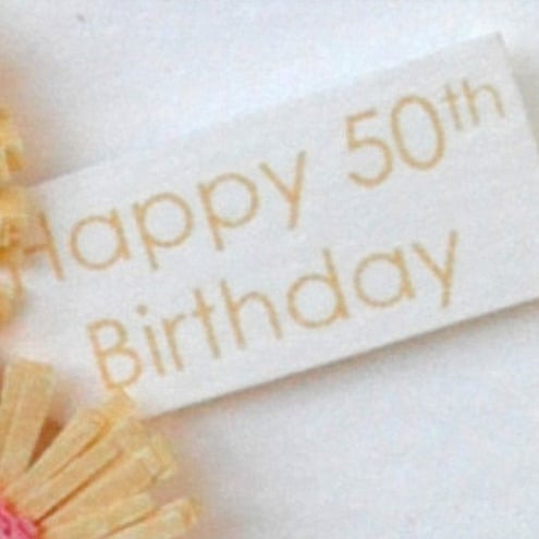 An arrangement of handmade quillled flowers and foliage nestling within an oval aperture with a tag that can read with any message of your choice. The message on card in the picture reads "Happy 50th Birthday" but this can be customised to any message you choose. Just leave me a note as you go through the order process.