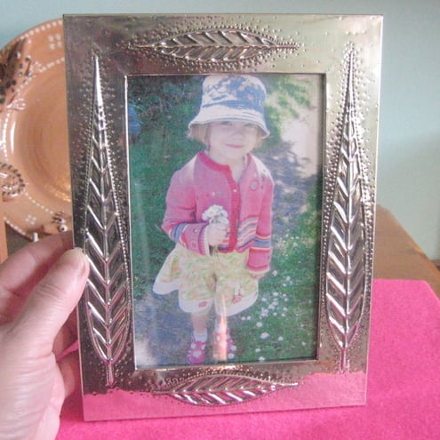 This striking frame has been hand-made in shiny modern lead-free pewter.It measures 146 x 197 overall, and the aperture is 91 x 142mm.It is backed in black velour, and there is a stand and a hook for hanging.If you buy more than one item from me, excess postage will be refunded via Paypal.