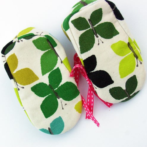 Gorgeous little Baby Booties made from Designer Alexander Henry Fabric with a soft white lining to make them extra cosy for your little one.