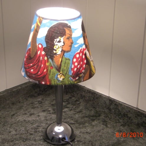 The lampshade measures approx. 4" diameter at the top, 7" diameter across the bottom and 6" in height.