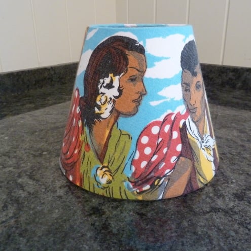 This delightful lampshade really is a one-off. The fabric is used, probably 70s and the lampshade was made from just one small piece of fabric I came across.
