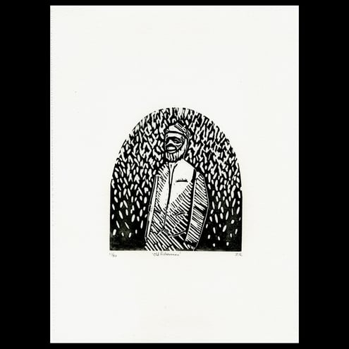 Black ink on off-white German Zerkall 170gsm acid-free paper. From an edition of 100, numbered and signed.