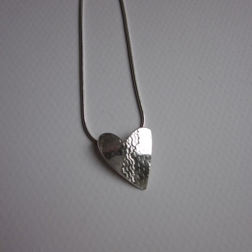 Individually handmade Small Heart Pendant textured with the pattern of lace. Classic heart shape makes an eye catching necklace worn on by itself or with the matching heart earrings.
