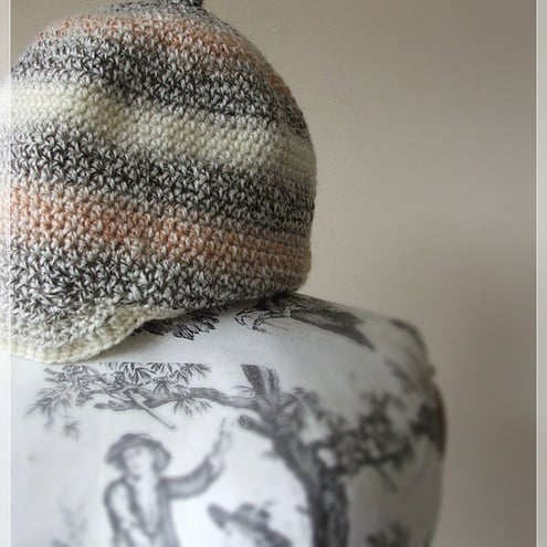 a simple hat, crocheted with a multicolored acrylic yarn...