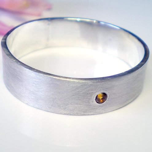 a sterling silver band of 5mm large with a sparking citrine gemstone set by hand, by Moi-meme.