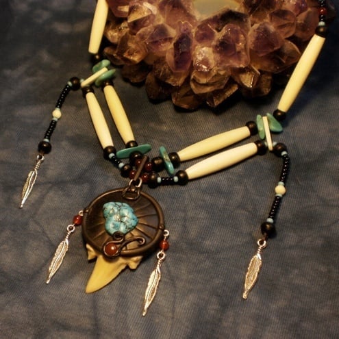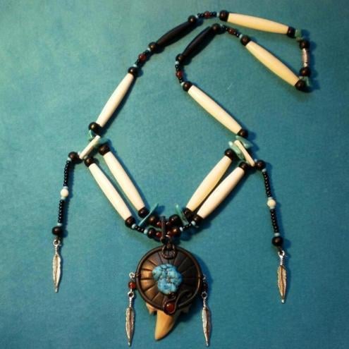 I have handcrafted this unique and slightly unusual bone necklace in a Native American style.