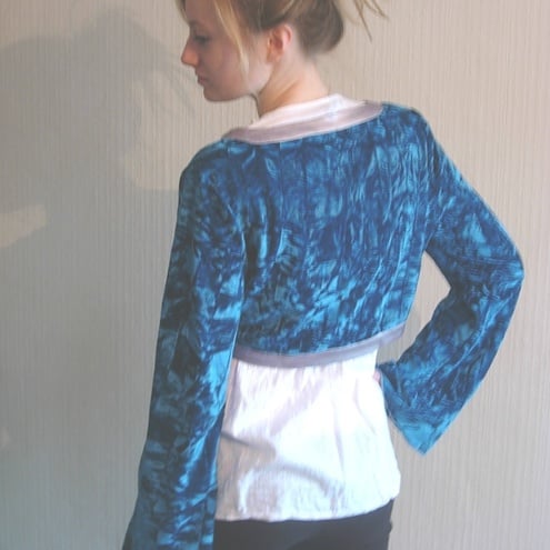 I can make this shrug with angel or straight sleeves, long or 3/4 length....and in any colour crushed velvet! Simply contact me to discuss your order.