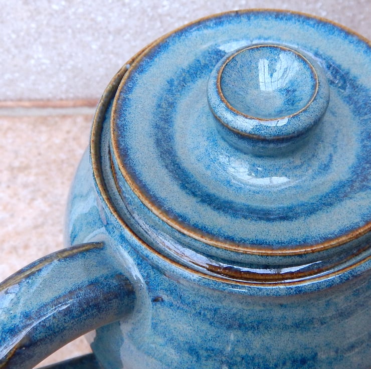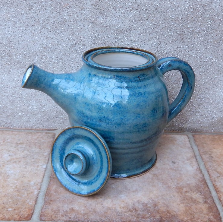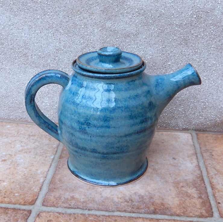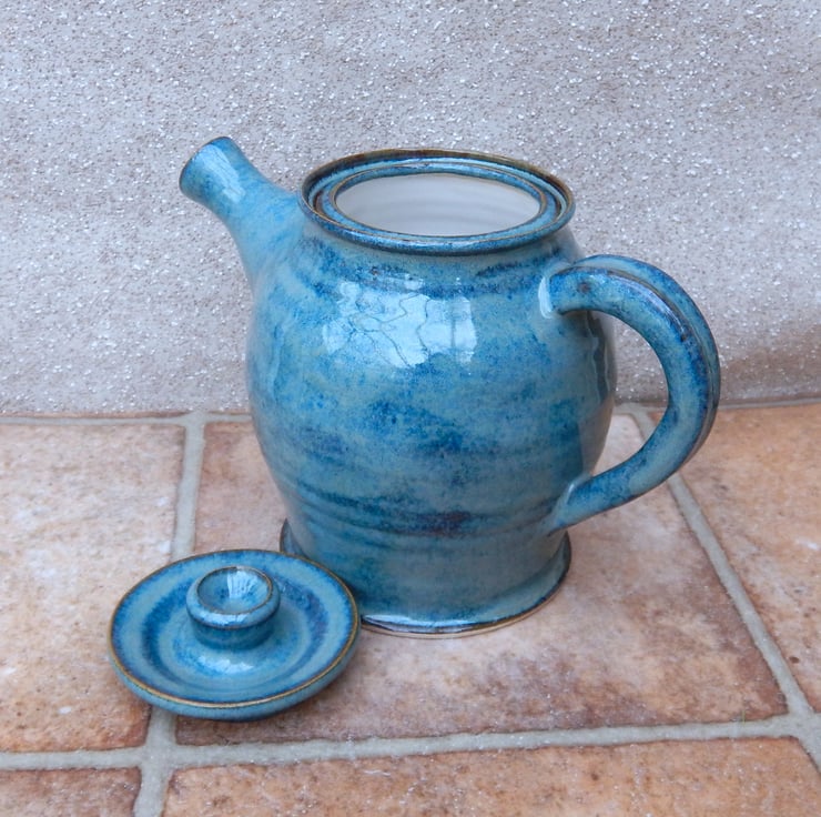 Handthrown on the pottery wheel using strong white stoneware clay and finished in a lovely dark aquamarine blue reactive glazes.