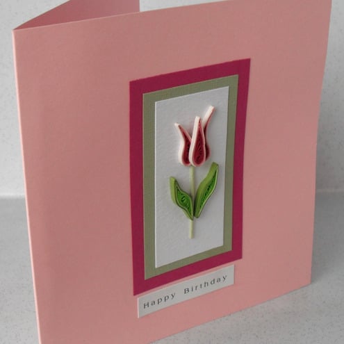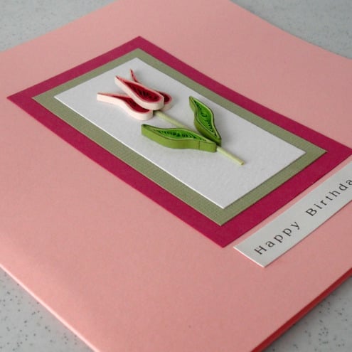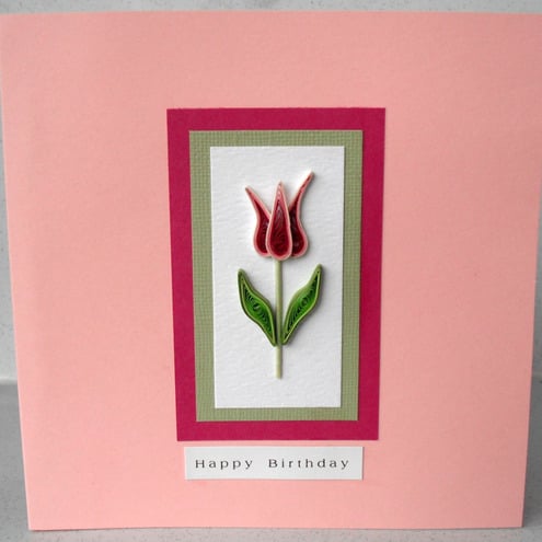 A pretty quilled card with a striking quilling tulip, perfect for helping that someone special celebrate a birthday.
