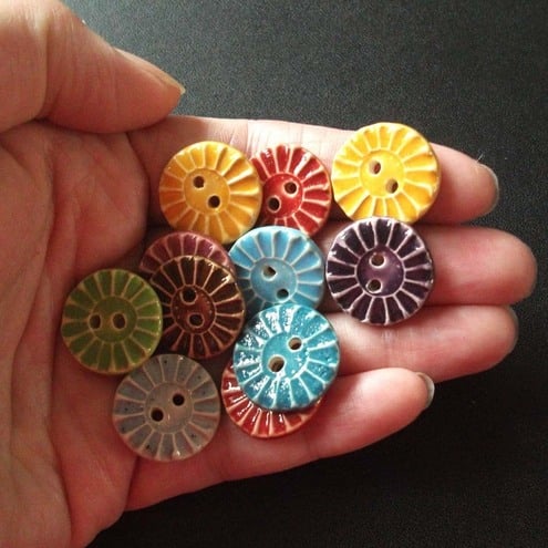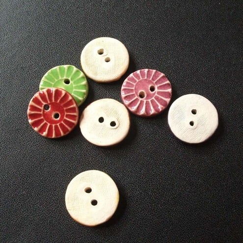 This cute little set of buttons are made from white earthenware clay and glazed on the front in bright glossy glazes.