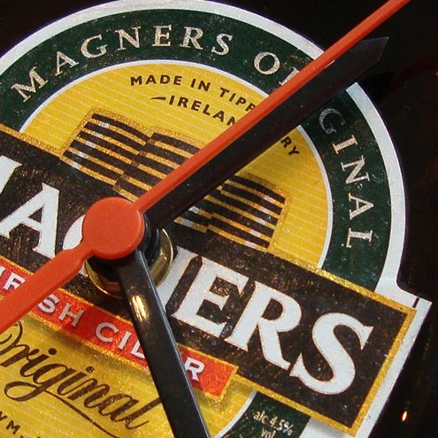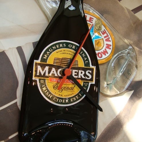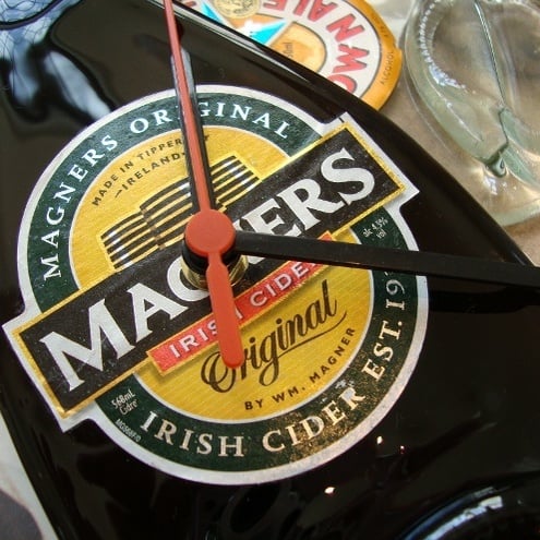 These cheeky little bottle clocks are made from original magners bottles,