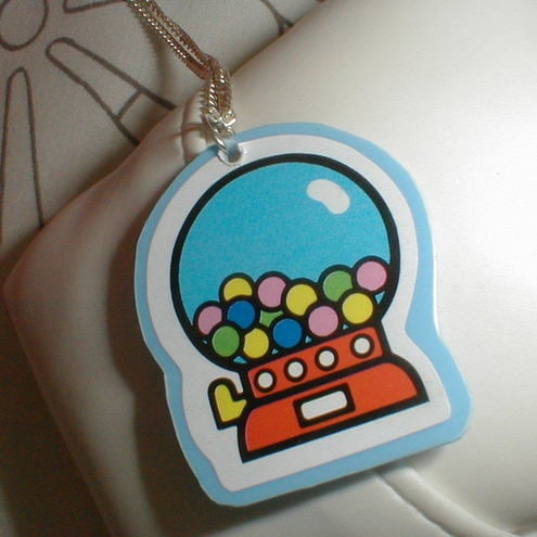 super cute pendant made using a sticker mounted on blue plastic.