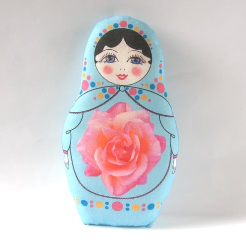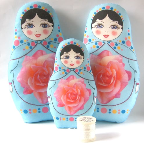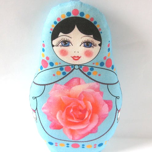 This Russian Doll Plush is my own design and can be used as an ornament or toy. I was inspired by the traditional wooden Russian dolls when designing it but wanted it also to have a contemporary twist.