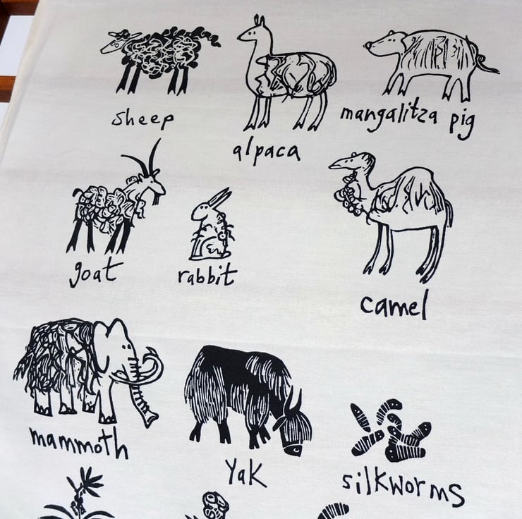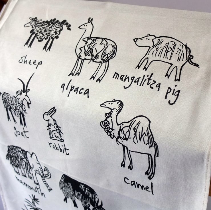 A tea towel for knitters, crafters, animal lovers, thread and fibre lovers...