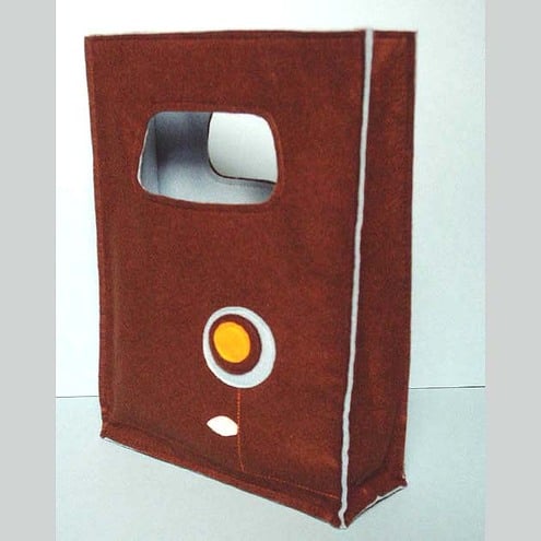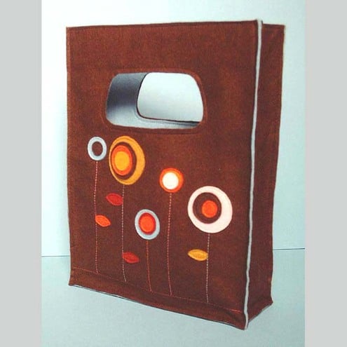Made from brown felt with multi-coloured detailing, this handbag has a blue felt lining and a reinforced handle. It also has a flower detail on the back and measures approx. 30cm x 23cm x 8cm