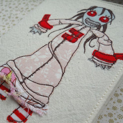 stripey sock wearin’, straight jacket escapin’ lady zombie notebook cover and A6 notebook