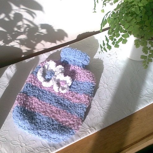 Stay warm this winter with this supersoft hot water bottle cover. Soft pastel stripes and white flowers add to the air of cosy and warm and toes need not go cold again.
