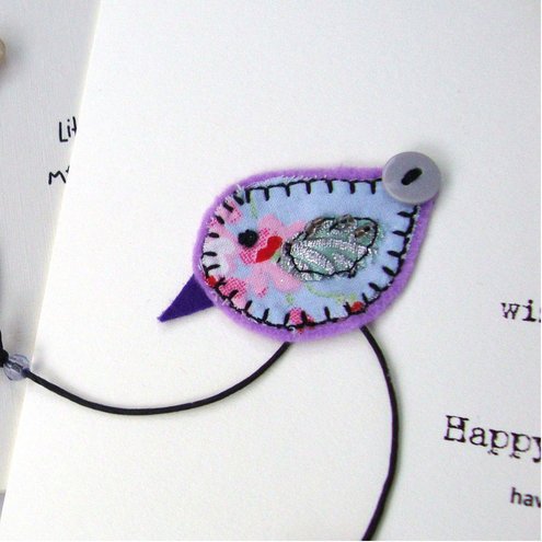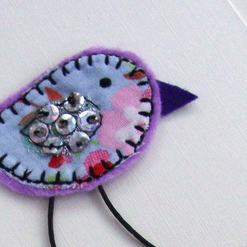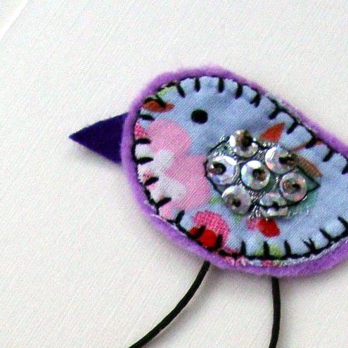 made from felt and fabric scraps with sparkly embellishments and dangly legs