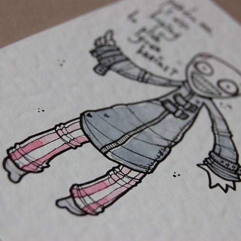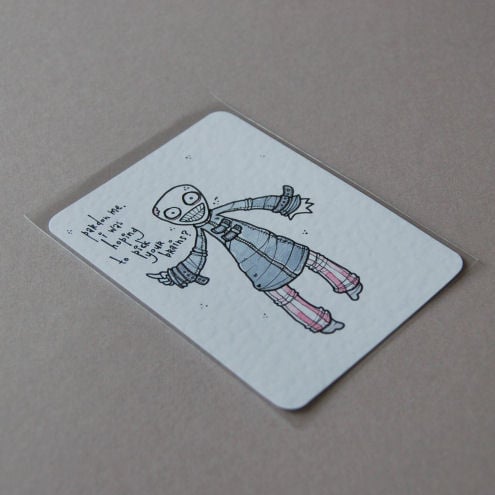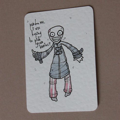 original artwork in artists pens and watercolour paints, on textured white card.
