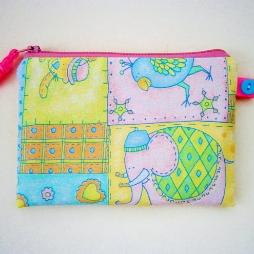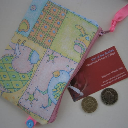 Pretty little printed fabric coin purse, perfect for your coins, mobile phone, camera, notes and cards and even make up