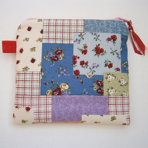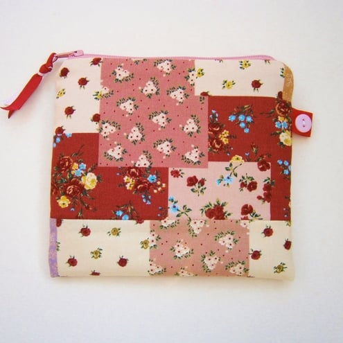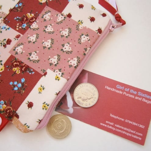 Shabby chic credit card / coin purse with contrasting zip and lining.