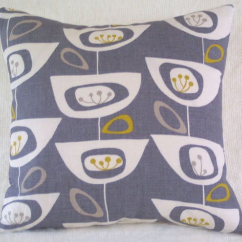 Seedhead cushion cover in a great vintage inspired design. Linen mix fabric, beautiful slate grey backgroung and striking seedhead images.